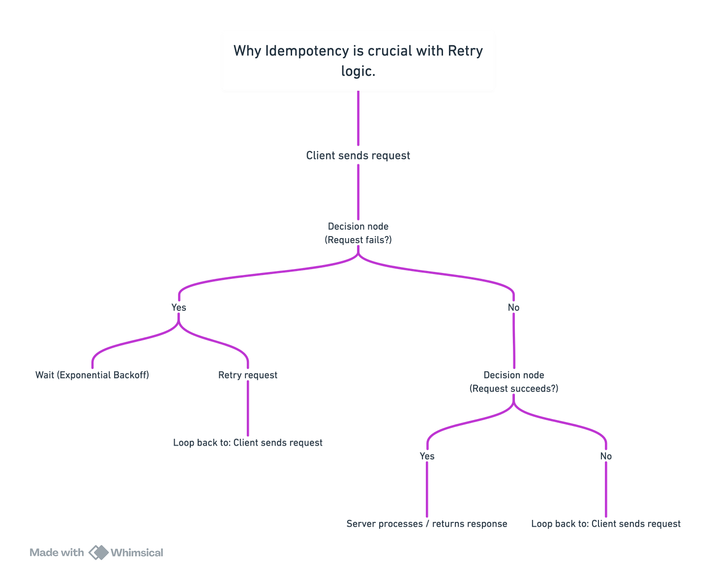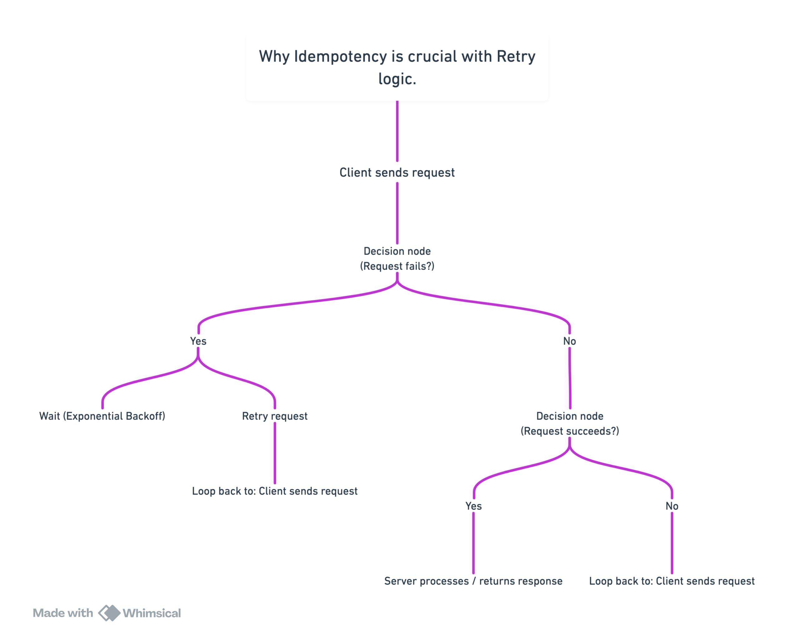 Retry logic alone is not enough if the request modifies data (like payments, orders, or messages).